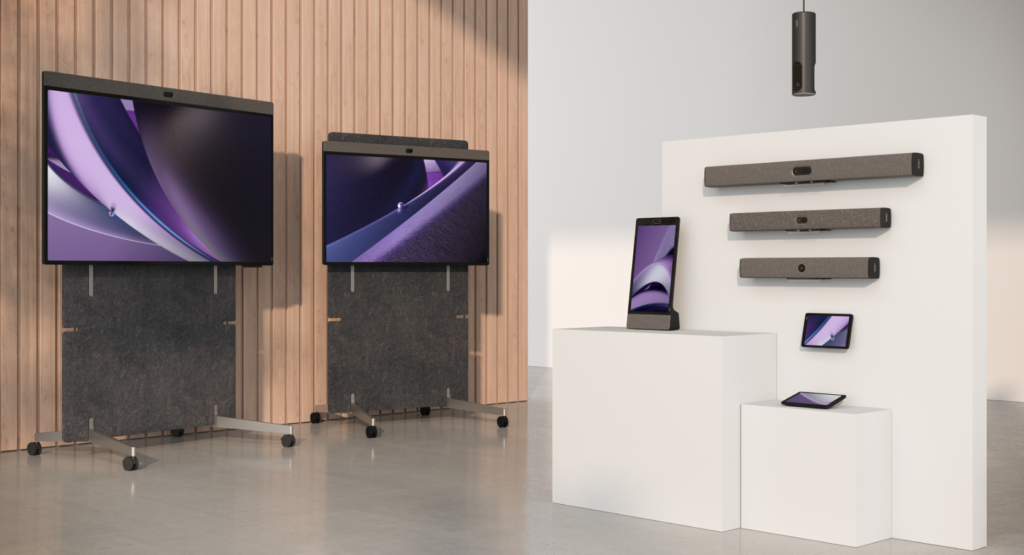 - Périphériques : webcam, caméra PTZ, barre vidéo, barre de visioconférence, station, moniteur, tableau blanc, vidéoprojecteur, casque, enceinte, speaker, capteur, contrôleur tactile, télécommande.